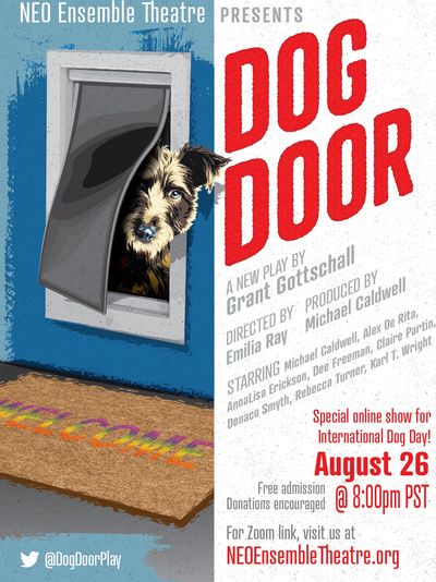 In honor of International Dog Day the NEO Ensemble Theatre is presenting a special online show of the new play "Dog Door" by Grant Gottschall on Friday, August 26th, 2022 at 8:00 p.m. via Zoom.