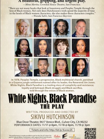 Sikivu Hutchinson's White Nights, Black Paradise play, amplifies the lived experiences, politics, moral dilemmas, and social histories of Black women in Peoples Temple and Jonestown.